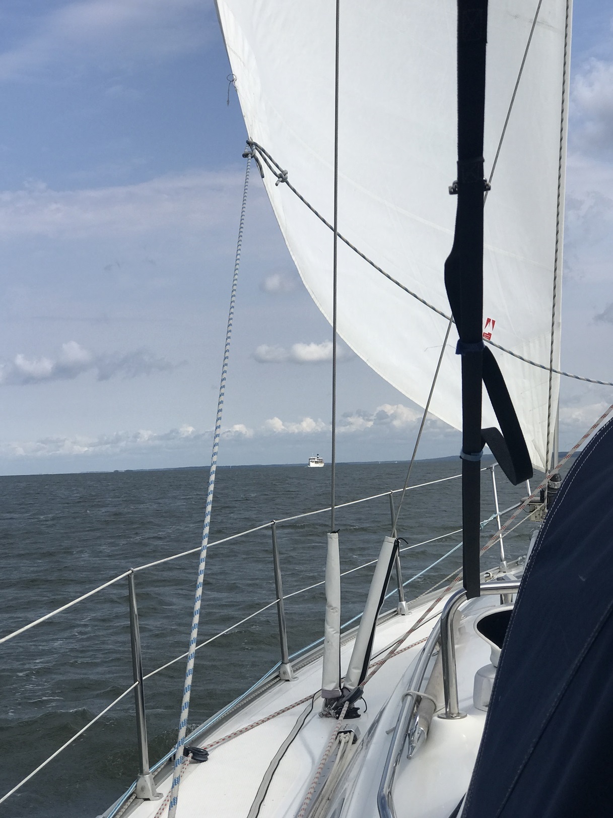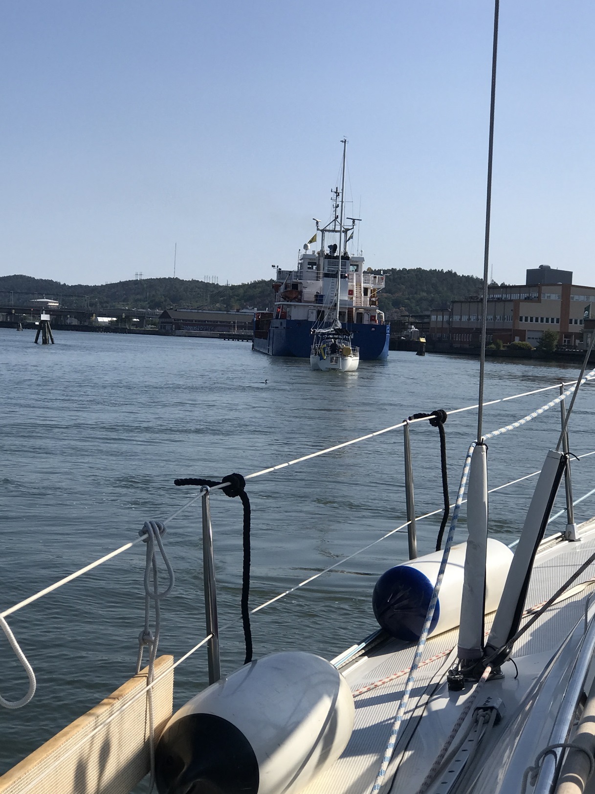 9,5kn Fahrt durchs Wasser als Spitzenwert hatte ich das letzte Mal vor Nazaré/Portugal, allerdings halfen da die Atlantikwellen mit. Auf dem Vänernsee mit den kurzen kappeligen Wellen hätte ich das nicht für möglich gehalten.