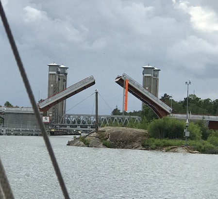 Nachdem wir die 6 aufeinanderfolgenden Schleusen passiert hatten (wir hatten das Schleusen ja auf der Reise durch Frankreich geübt), ging es weiter nach Vänersborg. Es waren nur noch zwei Brücken zu passieren, kein Problem - dachten wir....