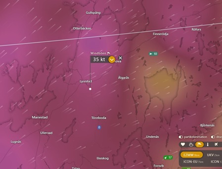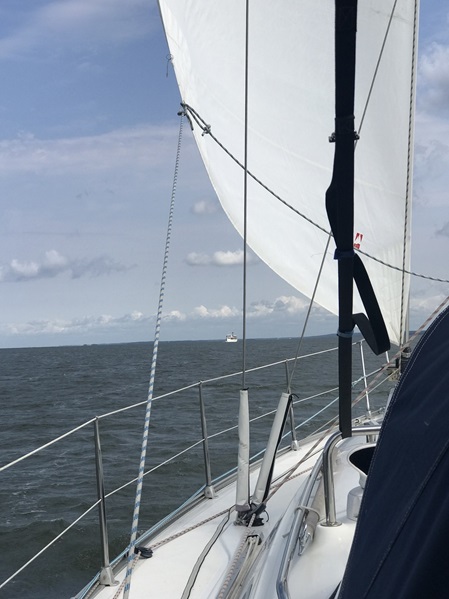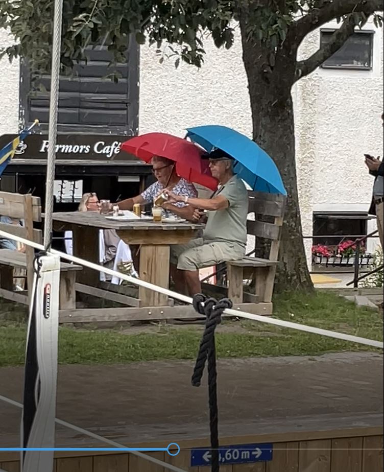 Die Überfahrt von Spiken nach Mariestad war dann noch ein Abenteuer für sich. Windy sagte 15kn, in Böen 25kn Wind voraus, allerdings aus SW, d.h. schräg von achtern. Da werden wir schnell unterwegs sein. Meine Crew meuterte diesmal nicht, also legten wir am 30.6. in Spiken ab und fuhren durch die Schären auf den See. Der Wind war wie versprochen da und wir segelten mit 6-8kn Fahrt durchs Wasser Mariestad entgegen.