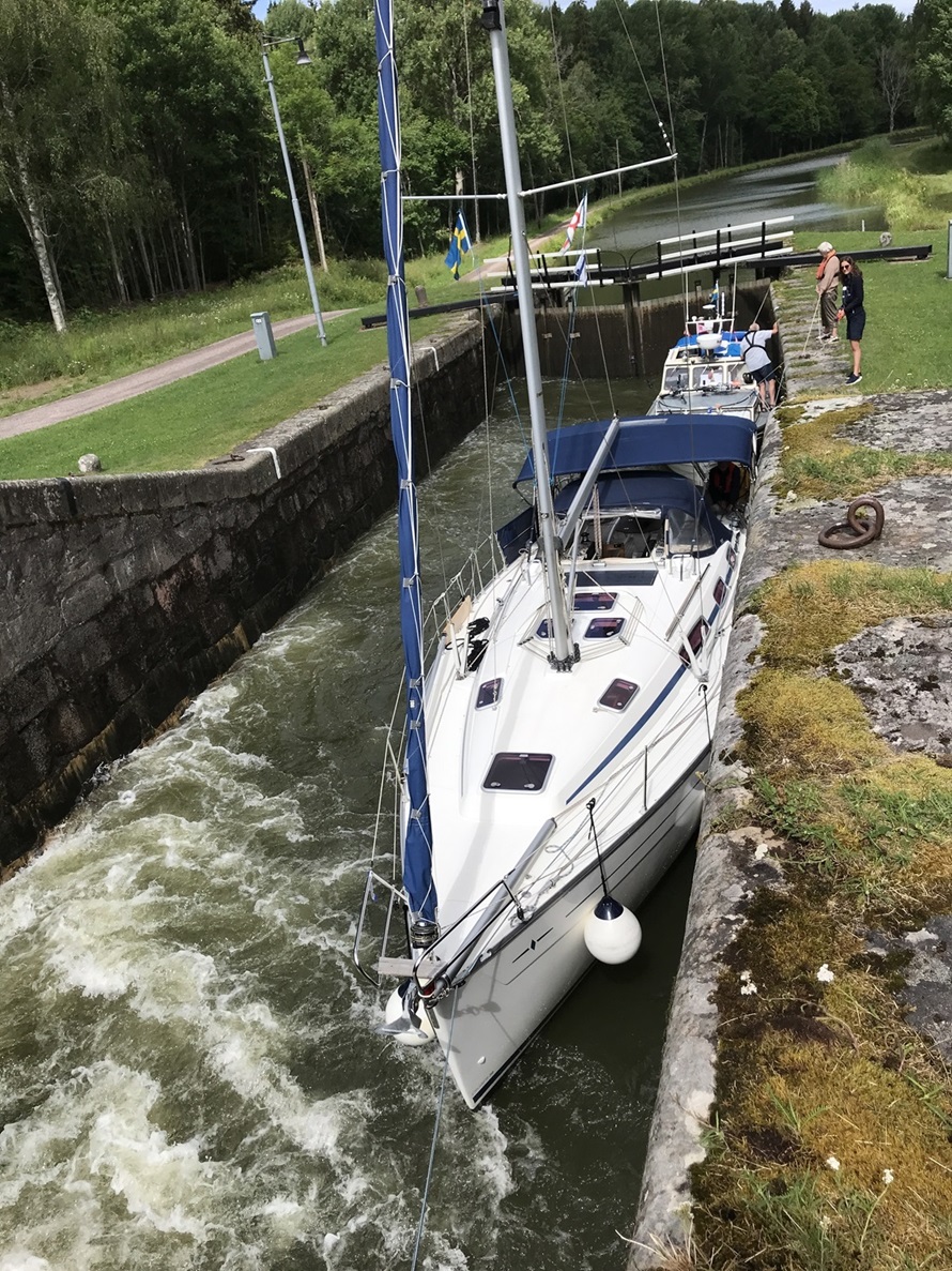 Das war nach 192 Schleusen auf dem Weg vom Mittelmeer an die Ostsee nicht der Hauptgrund für unseren Törn. Aber von einer Seite Schwedens an die andere quer durchs Land zufahren, war schon ein Highlite. Wir haben viel gesehen und viel erlebt. Die Landschaft, durch die wir fuhren, war oft atemberaubend. Die Schleusentreppen in Berg sind gewaltiger, als die auf dem Vogesenkanal. Überhaupt war der Götakanal in puncto Pflege und Service nicht mit den französischen Kanälen vergleichbar. Alles perfekt, die Jungs und Mädels an den Schleusen immer hilfreich und freundlich und man konnte sich mit ihnen in englisch verständigen. Natürlich gab es nie Tiefgangprobleme. Vielleicht war das alles der Grund dafür, dass wir die Reise entspannt und erholsam empfunden haben.