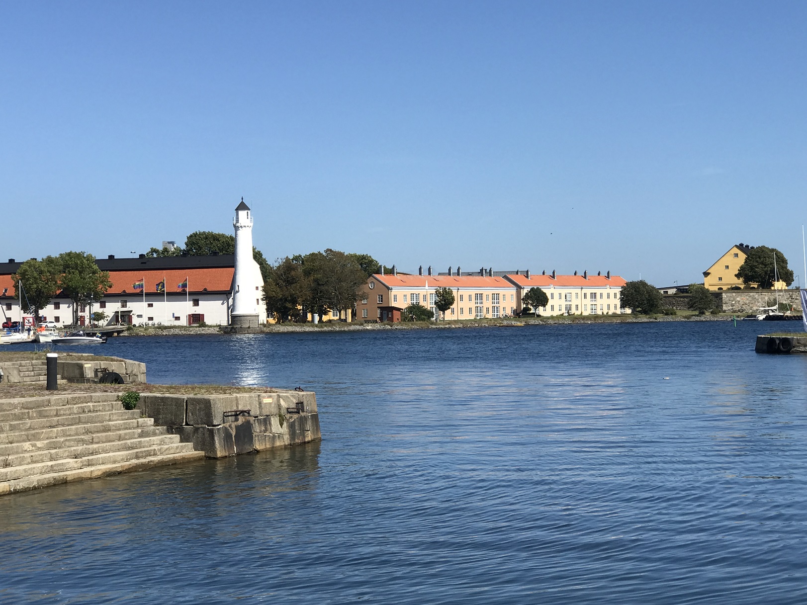 Nach einer schönen weil sonnigen Fahrt durch den Möcklosund erreichten wir am nächsten Tag, es war der 12.8., Karlskrona. Da wir immer so planen, dass wir am frühen Nachmittag ankommen, war der Liegeplatz kein Problem. Im Hafenführer war der Hafen durch die nahe Straße als laut beschrieben worden, wir merkten nichts davon.