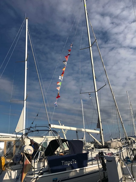 Die Jungs, die unseren Mast gestellt und getrimmt haben waren Profis vom Feinsten. Da saß jeder Handgriff und nach nur einer Stunde waren wir wieder auf unserem Liegeplatz. Diesmal als Segelboot. Der Preis war übrigens auch o.k.