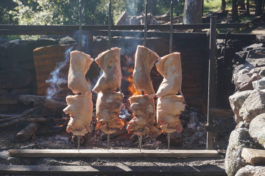 Die abendliche Stärkung nach all den Mühen hatte es in sich. Spanferkel nach alter Sitta am offenen Feuer gerbraten, lecker! Leider isst man immer zu viel, wenn es schmeckt. Wir waren 2 Tage satt....